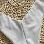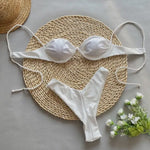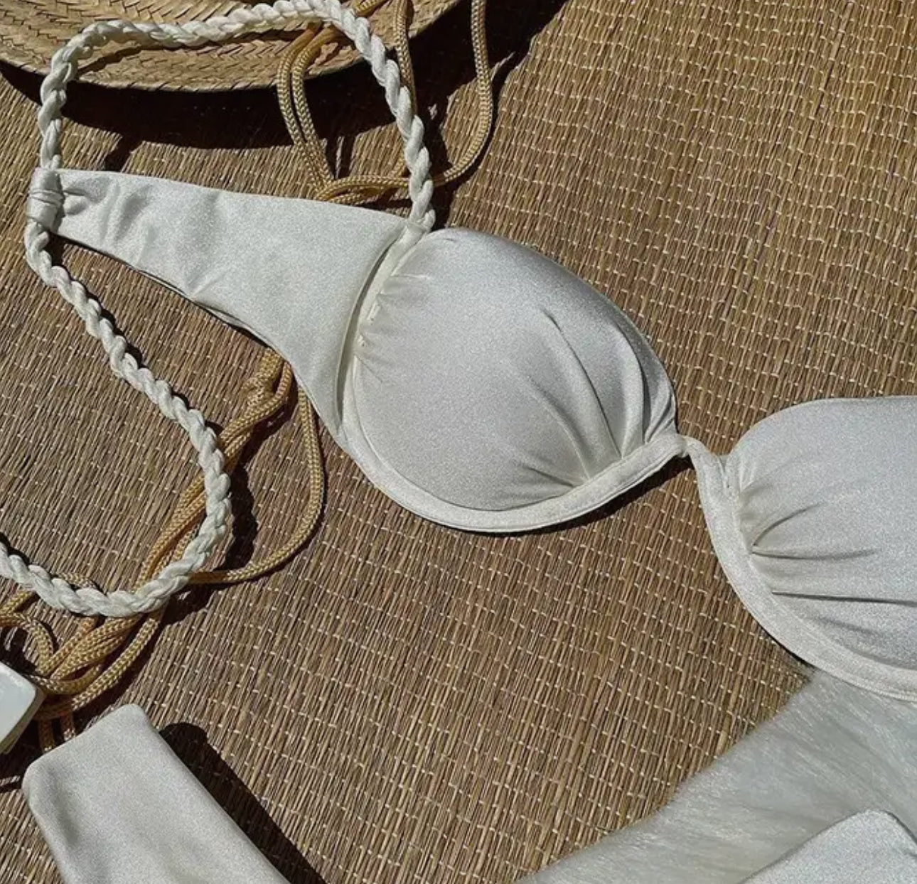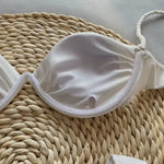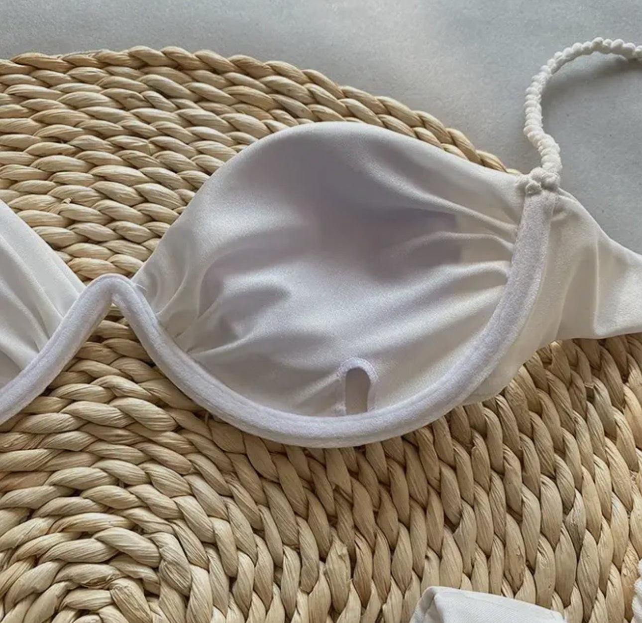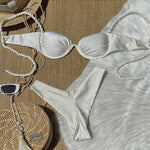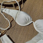 Embrace a timeless and sophisticated look with our All White Bikini with Rope Ties and Underwire Support, perfect for making a chic statement at any sun-soaked destination.